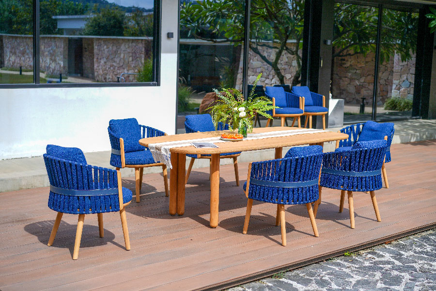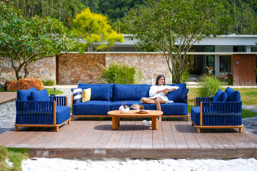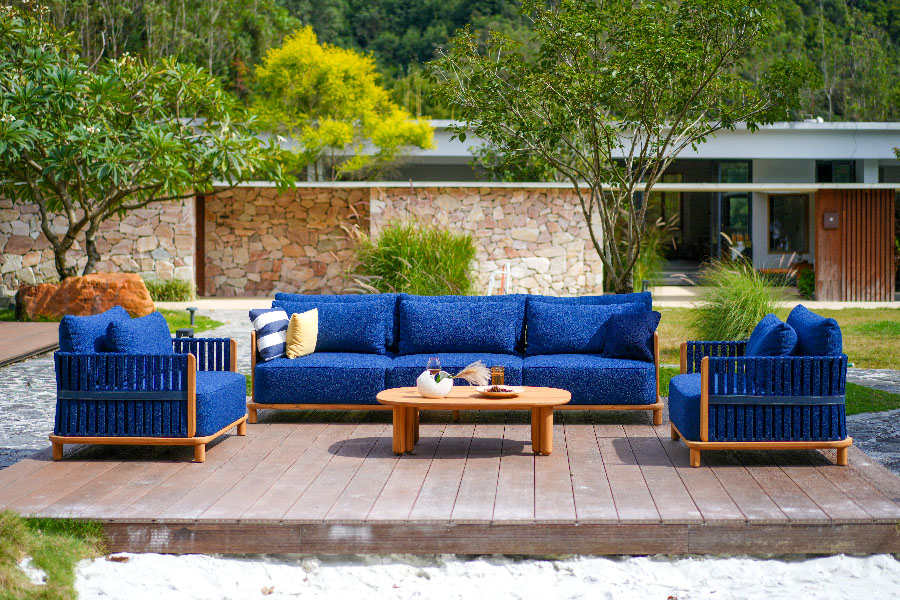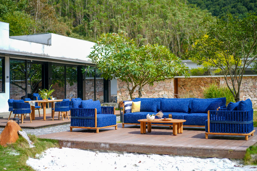 LILY outdoor leisure sofa, smooth curve combination, like a jumping note, armrest extension arc like a dancer's flowing skirt, embedded in the sofa, as if lying in the arms of lovers, the slender elegance of the vertebral feet, is borrowed from the ballet dancer's light footsteps, with the same curve combination of the coffee table, plus customized ceramic foot covers, so that the whole yard is full of luxury.